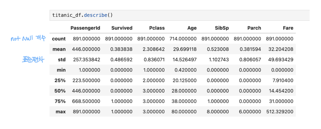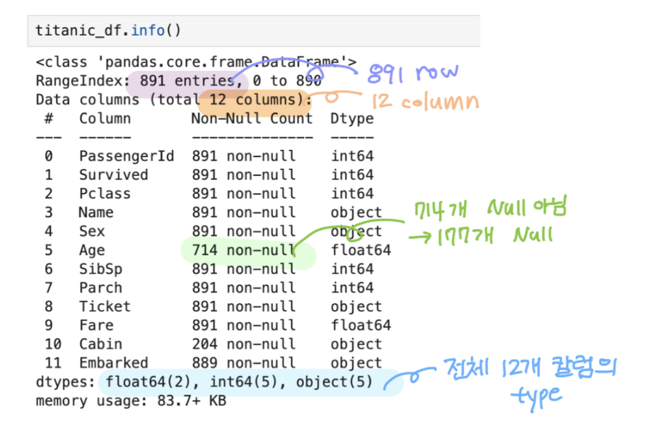 - 총 데이터 건수, 데이터 타입, Null 건수info