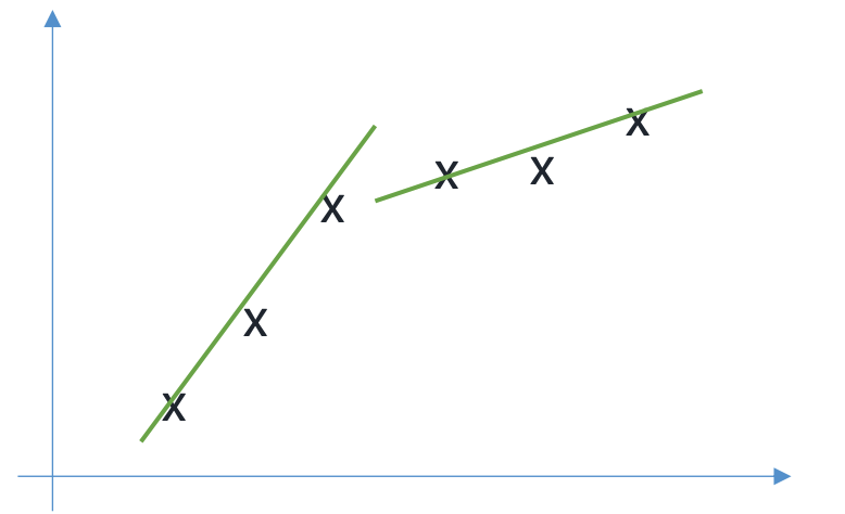 초록 직선이 하나만 있으면 linear model 이지만, 초록 직선이 여러 개 있으면 non linear model 처럼 보인다.