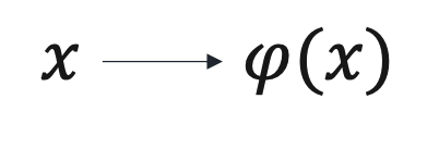 와 z가 원래 차원이 n인 벡터라고 가정하면, 이들을 고차원 공간으로 사상하면 각 원소의 곱으로 구성된 새로운 벡터 ϕ(x)와 ϕ(z)가 만들어진다. 이렇게 하면 차원이 $O(n^2)$으로 증가한다.