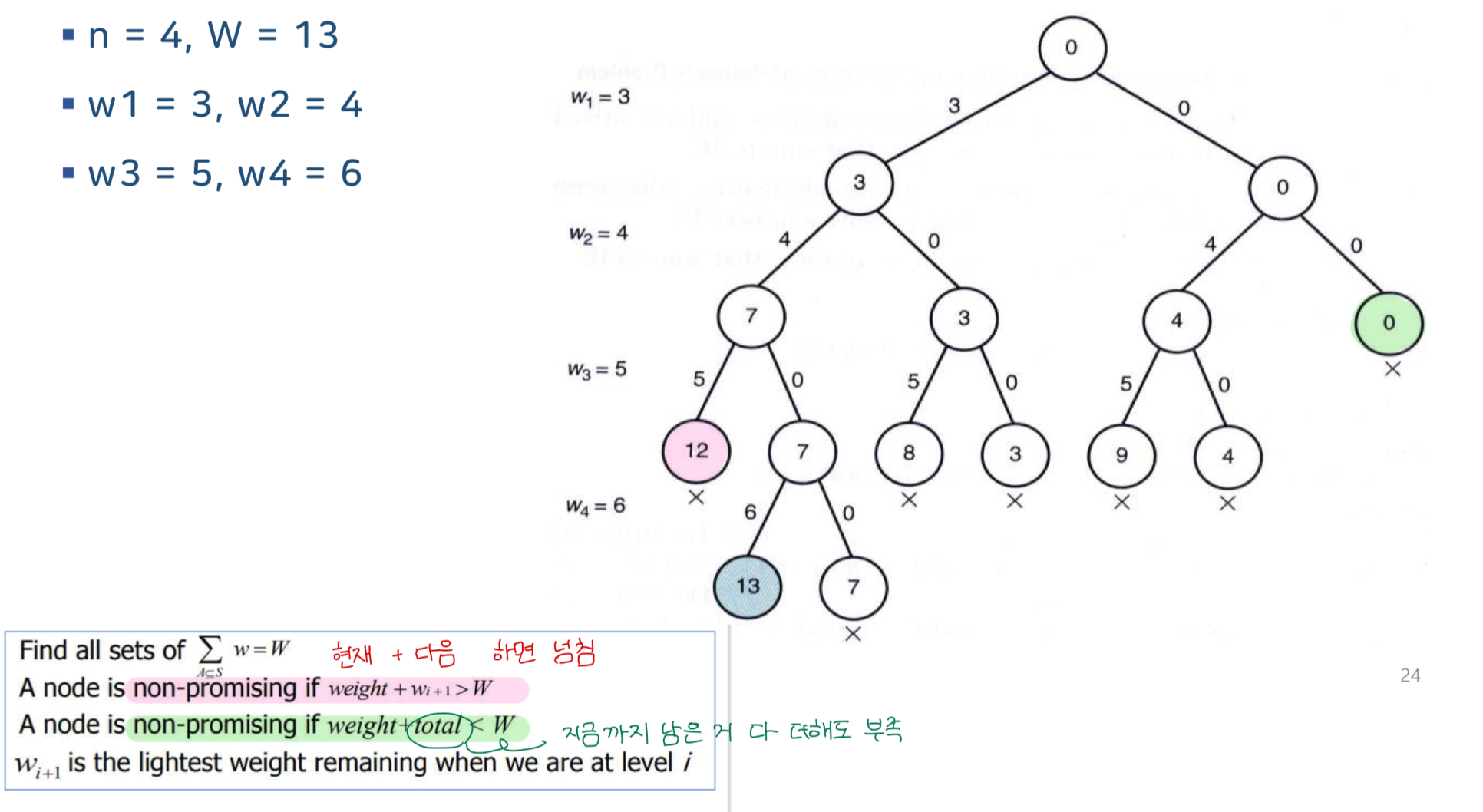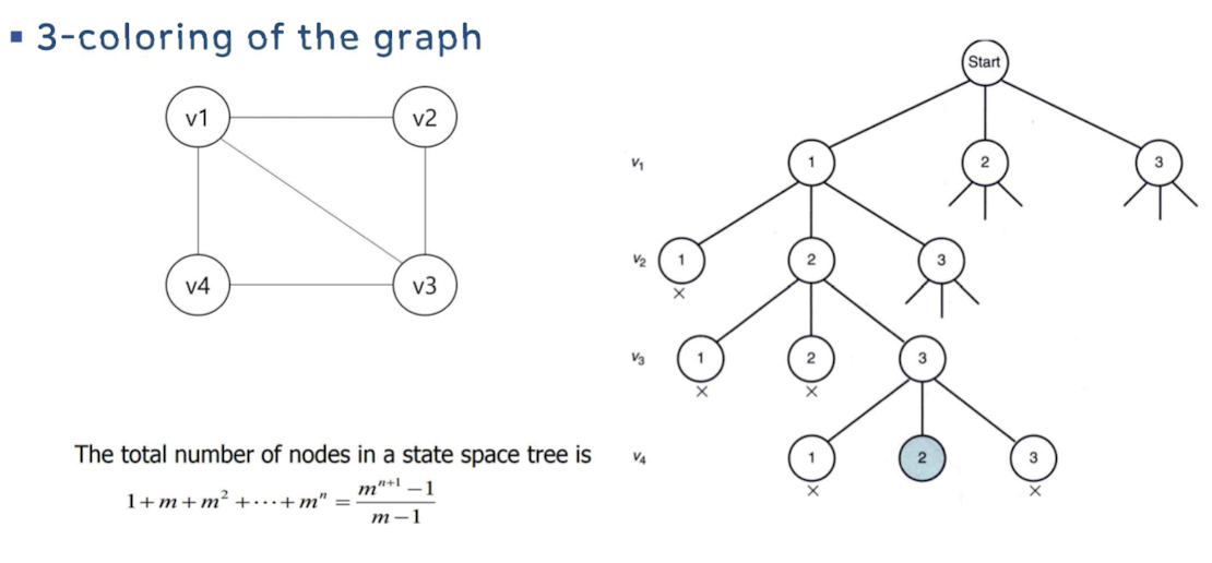 모든 경우의 수를 확인하는 상태 공간 트리에서는 이파리 노드 수만 계산해도 (n-1) ! 이다. 이진트리로 계산해도 최악의 경우 2^n 개의 노드를 탐색해야 한다. 이는 시간이 오래 걸리기 때문에, 백트래킹 기법의 가지치기를 하면 효율적이다.