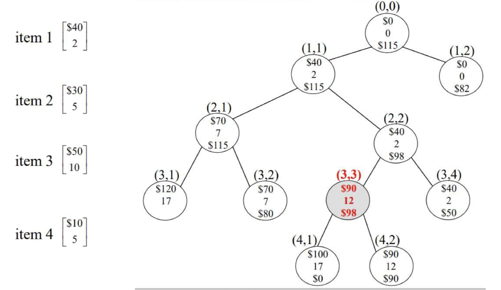 분기 한정 기법은 상태 공간 트리의 각 노드에 특정한 값 (한정값) 을 부여한다. 너비 우선 탐색 중에서도 둘 중 더 유망한 것을 먼저 탐색하는 최선 우선 탐색 (Best First Search) 을 사용한다. 즉, 최적해가 있을 만한 영역을 먼저 탐색한다.