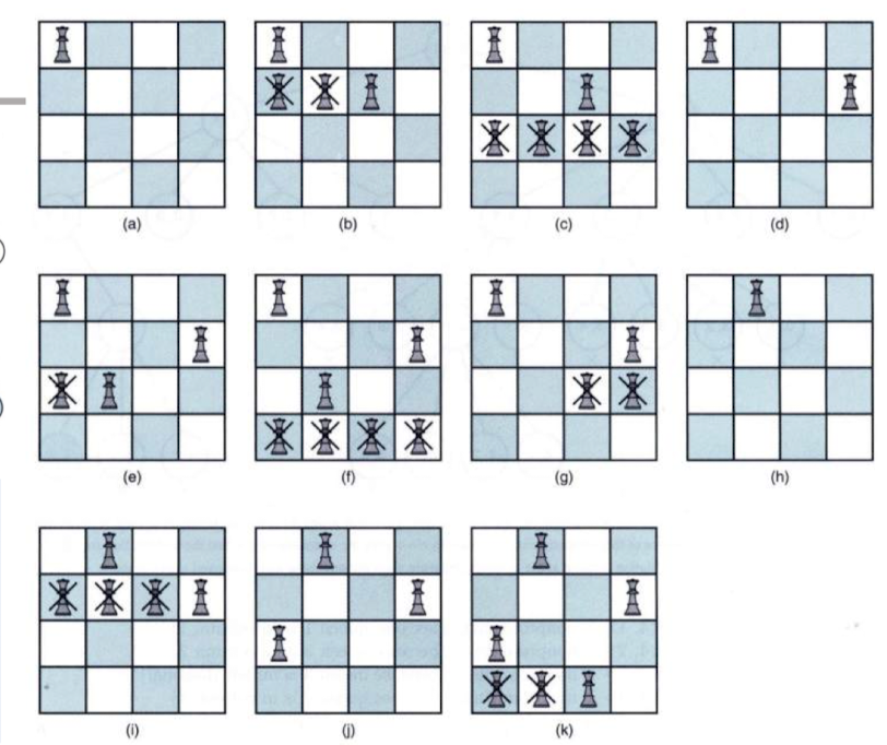 이 문제도 상태 공간 트리로 탐색하면 4^4=256 의 해가 있다. 하지만 백트래킹 기법을 사용하면 최초 해를 발견하기 까지 27번의 탐색만 하면 된다.